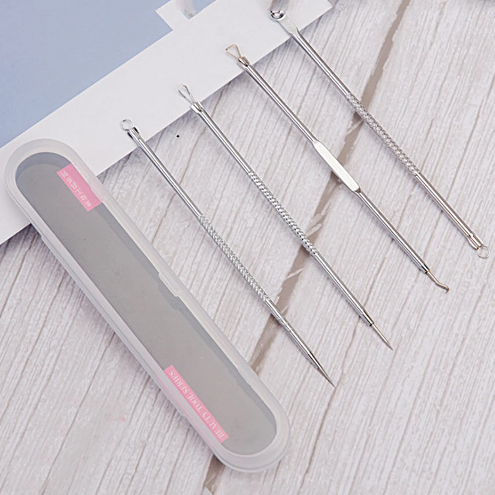 Name: 4 unids/set Blackhead removedor de cabeza negra Comedone acné herramientas para espinillas cuchara para herramienta para cuidado de la piel Facial agujas Facial limpiador de poros