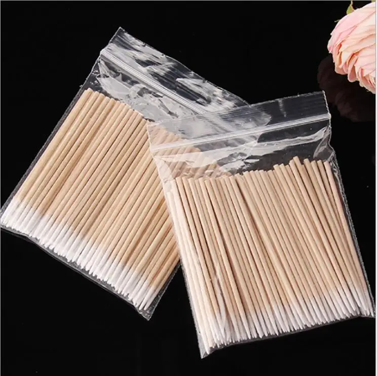 Gran venta Mango de madera pequeño de 7cm, cabezal con punta estrecha, hisopo de algodón, tatuaje belleza, maquillaje, Color, costura de uñas dedicada a la recolección de suciedad, 100 Uds. y9VKM10YMNr
